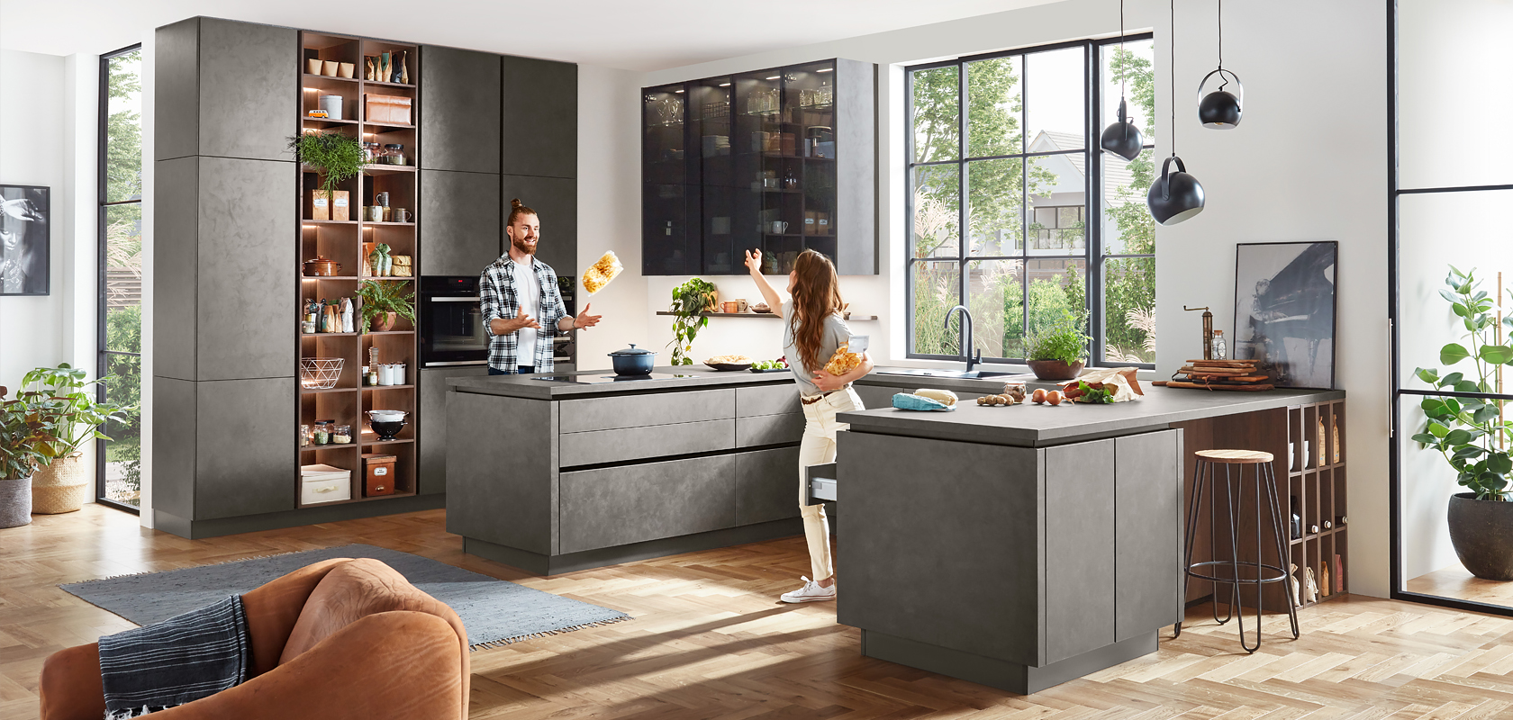 Ein schlichtes, puristisches Design, klare Linien und hochwertige Materialien – das zeichnet moderne Küchen aus. Dadurch setzt sie sich auch stark von Landhausküchen ab. Im Trend liegen natürliche Materialien wie Holz, aber auch Glas, Beton oder sogar Leder kommen zum Einsatz. Vernetzte Elektrogeräte, Arbeitsplatten aus Naturstein, grifflose Fronten, neue Lösungen für Stauraum und Zubehör: Die Ausstattungsmerkmale der modernen Einbauküche sind vielseitig.