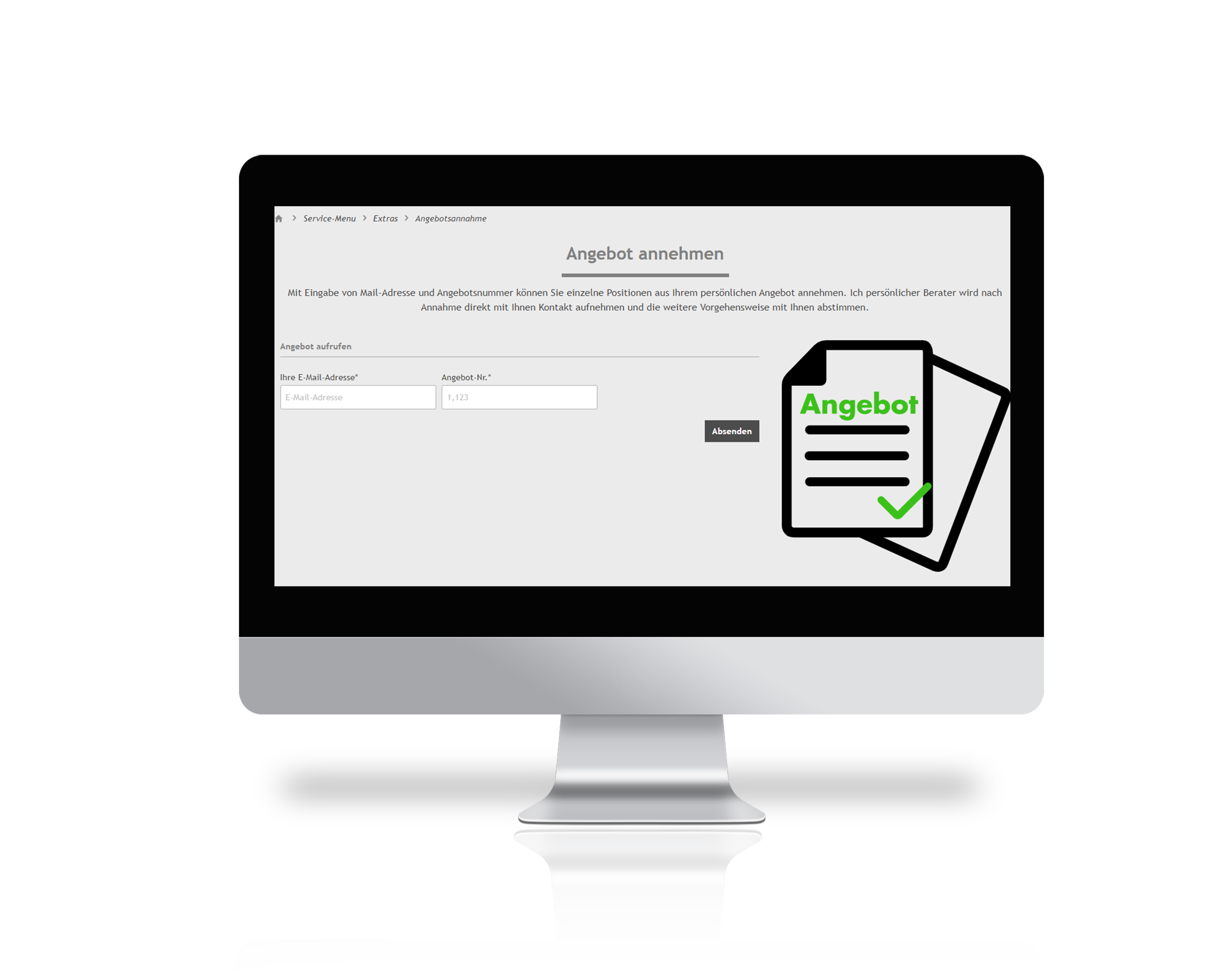 Durch die Eingabe ihrer E-Mail-Adresse und der einzigartigen Angebotsnummer erhalten sie Zugriff auf das Angebot und können dieses unmittelbar annehmen oder ablehnen. Diese direkte Interaktionsmöglichkeit vereinfacht den Kaufprozess erheblich und erhöht die Kundenzufriedenheit, indem sie den Kunden eine nahtlose Entscheidungsfindung ermöglicht.