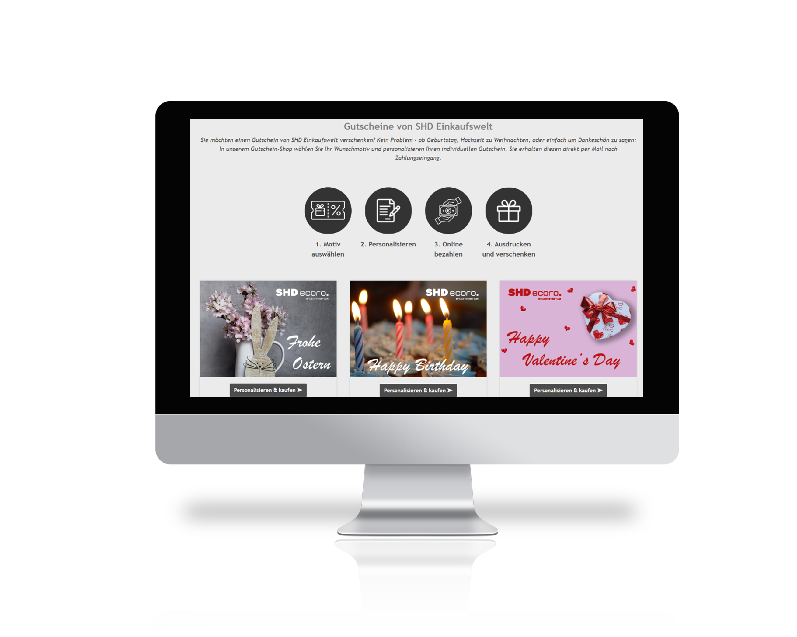 Mit unserem innovativen Gutscheinshop bieten Sie den Kunden personalisierte, online bezahlbare und ausdruckbare Gutscheine zum Verschenken. Kein Warten, kein Stress - stattdessen bequem von überall aus. Für die Kunden bedeutet es unkomplizierte Gestaltung und Freiheit bei der Auswahl, für Sie eine Umsatzsteigerung, da sie den Kunden Anreize bieten, einzukaufen. Darüber hinaus fördern Sie die Kundenbindung.