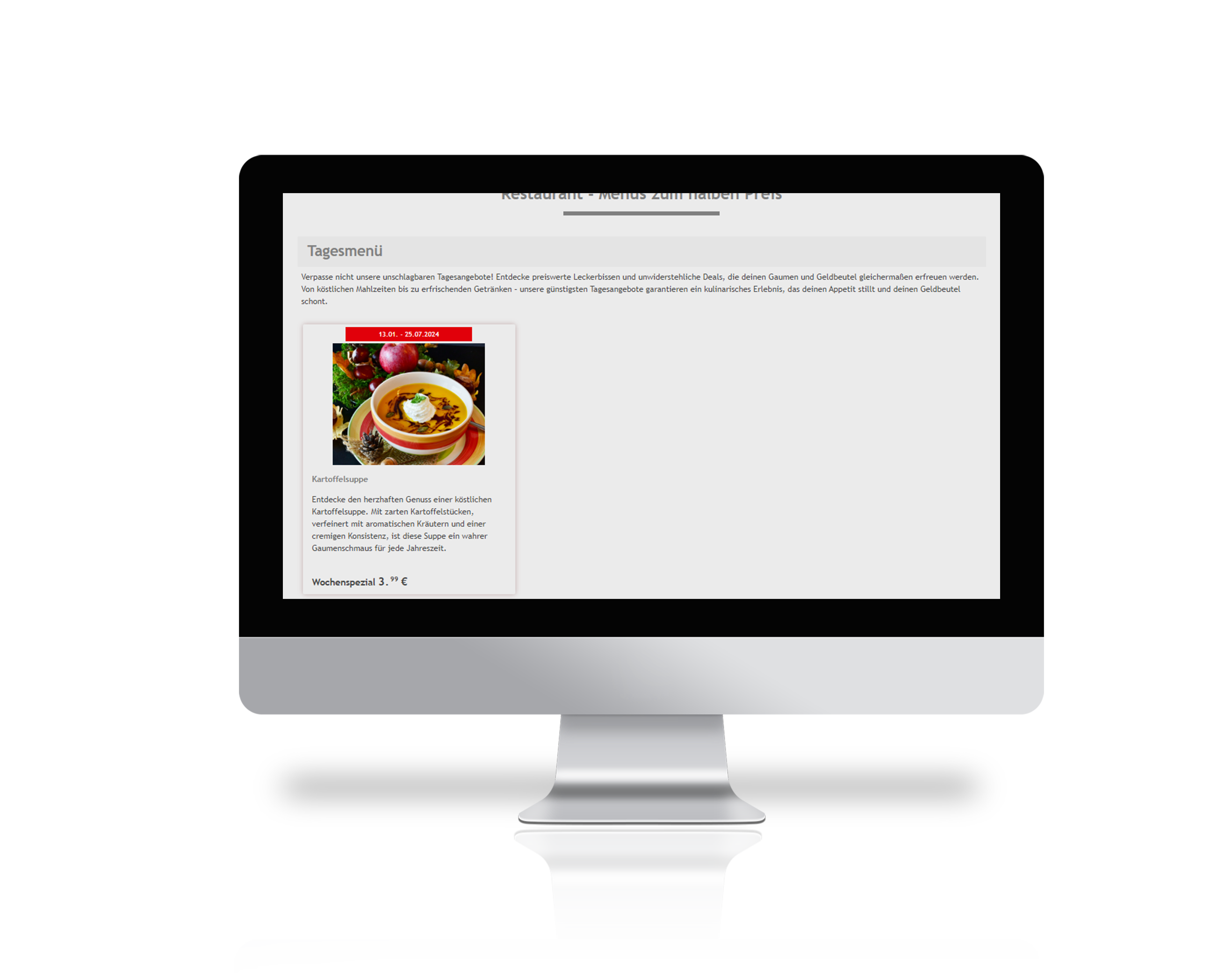 Das Restaurant Speisekarten Plugin ermöglicht es Möbelunternehmen mit einem hauseigenen Restaurant, ihre Speisekarte direkt im Online-Shop zu integrieren. Kunden haben somit die praktische Möglichkeit, die Speisen online einzusehen und auszuwählen.